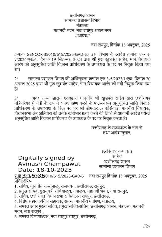 डोमनलाल कोर्सेवाड़ा बने अनुसूचित जाति विकास प्राधिकरण के उपाध्यक्ष