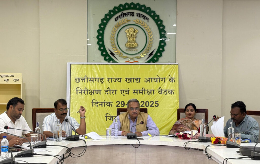 रायपुर। 29 अक्टूबर 2025 को श्री , छत्तीसगढ़ राज्य खाद्य आयोग के अध्यक्ष संदीप शर्मा ने आयोग के दल सहित रेड क्रॉस सोसाइटी भवन कलेक्टर परिसर में पीडीएस मध्यान भोजन योजना और पूरक पोषण आहार योजना तथा ट्राइबल विभाग द्वारा संचालित आश्रम छात्रावासों हेतु खाद्यान पर आधारित योजनाओं की समीक्षा संबंधित विभाग के अधिकारियों के साथ की। समीक्षा बैठक में जिले की सभी उचित मूल्य दुकानों में प्रत्येक माह निर्धारित समय पर राशन सामग्री के भंडारण एव वितरण के निर्देश दिए गए । सभी दुकानों में विभागीय कॉल सेंटर नंबर खाद्यान्न के सैंपल प्रदर्शित करने के भी निर्देश दिए गए ।