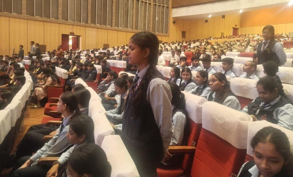 भारतीय वायुसेना की सूर्यकिरण एरोबैटिक टीम के सदस्य दीनदयाल उपाध्याय ऑडिटोरियम पहुँचे, जहाँ उन्होंने विद्यार्थियों से बातचीत की। बच्चों में टीम के पायलटों और तकनीकी विशेषज्ञों को देखकर जबरदस्त उत्साह था। सभागार में तालियों की गड़गड़ाहट के बीच बच्चों ने उत्साह से उनका स्वागत किया।
